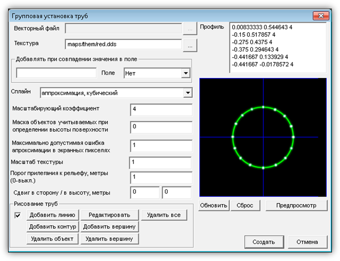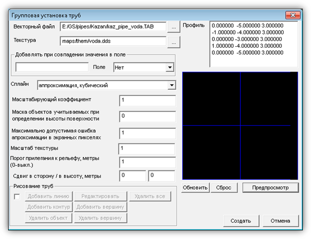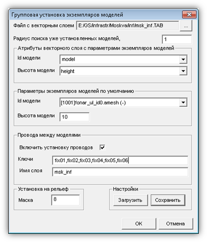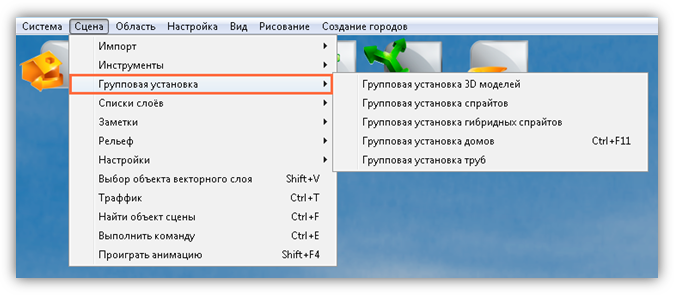 · Пункт «Групповая установка» (Рисунок 9) предназначен для автоматизированного получения и обновления слоев, содержащих трехмерные объекты, по векторным слоям, созданным во внешних программах. Он состоит из подпунктов:
