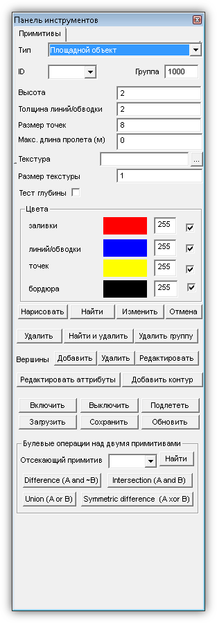 1. «Удалить примитивы» – включается режим ручного удаления точек и примитивов в основном окне Программы. В левом нижнем углу окна появляется подсказка с указанием необходимых действий.