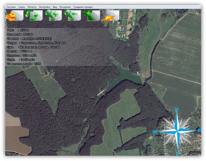 Рисунок 3 – Главное окно Программы со скрытой панелью инструментов и компасом