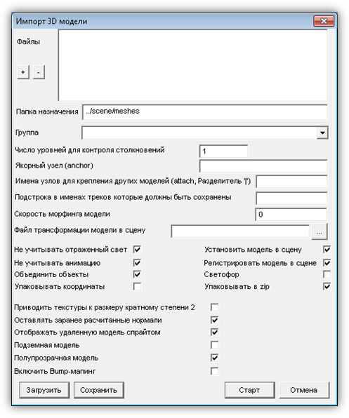 ü Импорт 3D модели;