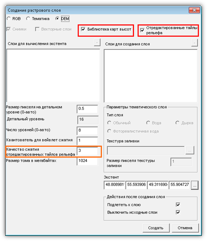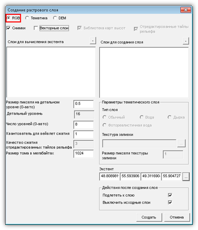 · Создать слой визуализации – включает отображение снимка в сцене, если это не было сделано раньше;
