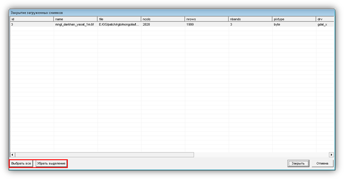 · Закрыть слой визуализации – при закрытии слоя визуализации снимок перестает отображаться в сцене, но не выгружается из Программы;