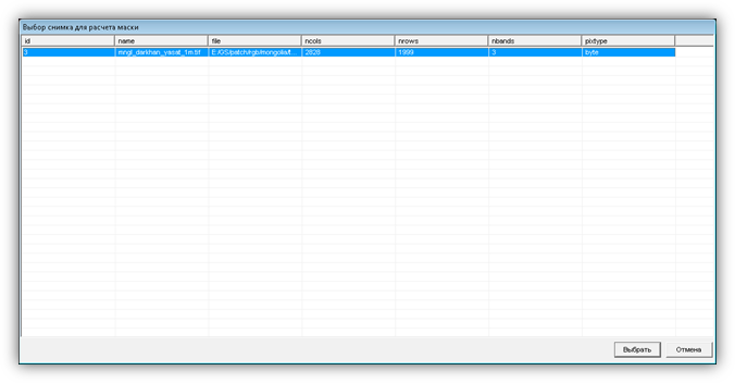 Рисунок 153 – Окно выбора снимка для расчета маски